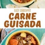 Looking for a delicious and hearty stew recipe? Try Crock-Pot Carne Guisada! This Latin-inspired beef stew is made with potatoes, peppers, garlic, and simmered in a flavorful tomato-based sauce.